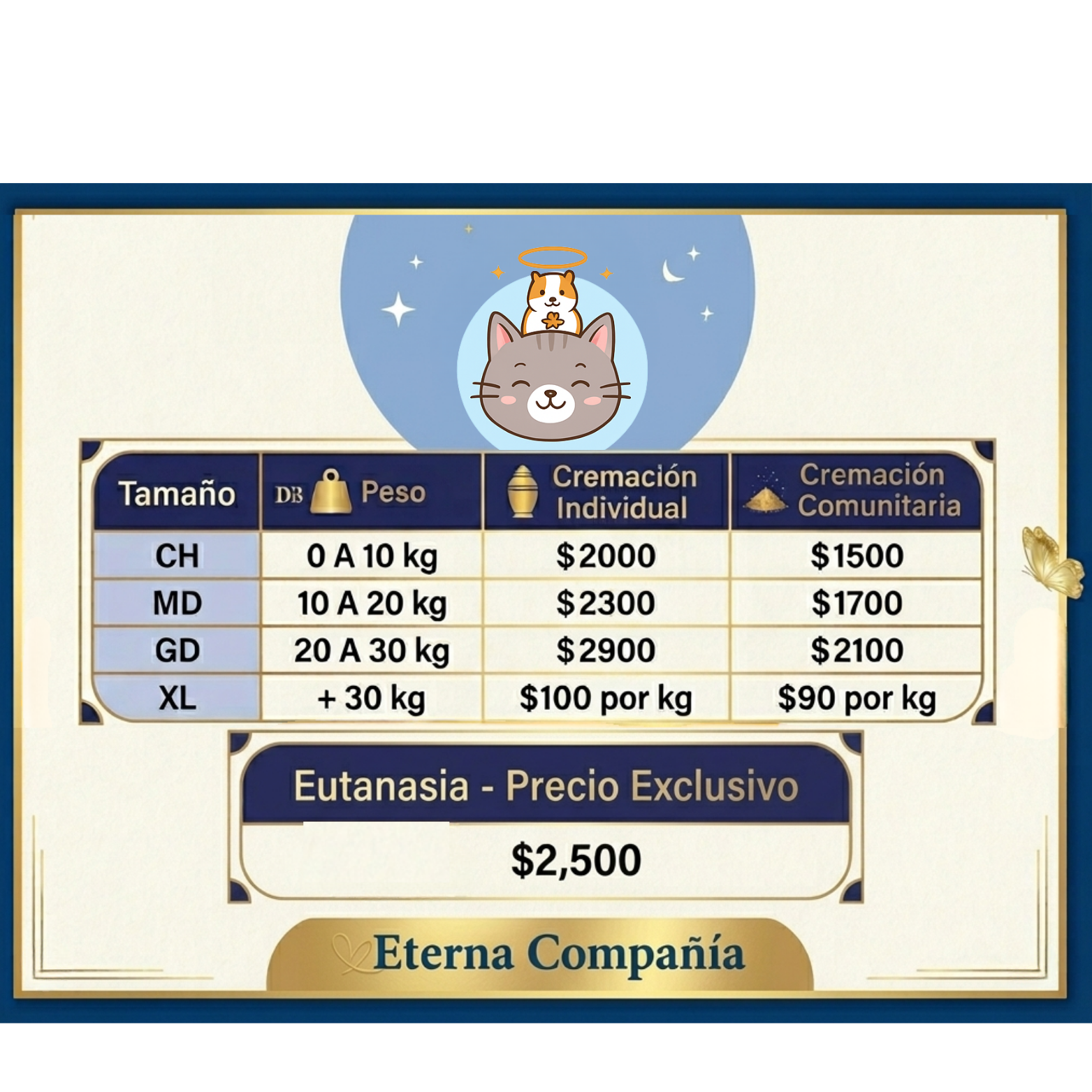 En eterna compañía, honramos la memoria de tu mascota con respeto, amor y un acompañamiento lleno de paz en cada paso del duelo. Otorgando un servicio de cremaciòn para mascotas digno y lleno de amor.